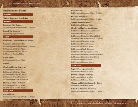 In Honor of Patricia Miller In Memory of Governor Harvey Wollman